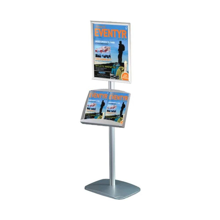 - In der Lieferung enthalten ist der jeweilige Infoständer mit Ihrem gewählten Rahmen-Format und 2xA4 Prospektregal (A3).