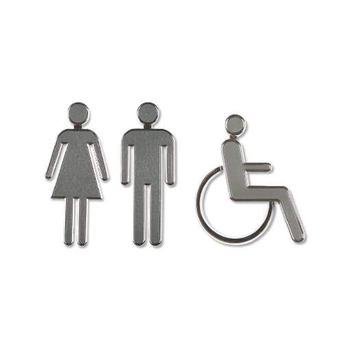 3D Toiletten WC Symbole selbstklebend Chromoptik Die 3D-Toiletten-Symbole in Chromoptik sind eine stilvolle und langlebige Lösung für die Kennzeich...