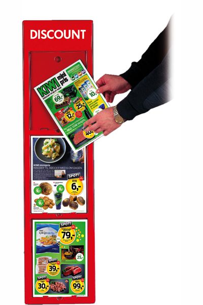 Info-Tafel & Prospekthalter Mit 3x A4. Aus 3 mm PS in Rot. Mit 3 Stück entspiegelten APET Frontscheiben. Prospekthalter ist leicht an allen Fäc...