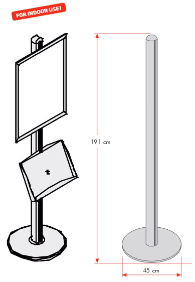 Ein Info-Ständer kann in einem Unternehmen vielseitig eingesetzt werden. Dieser Info-Ständer eignet sich besonders gut, um Besucher auf besondere Informationen oder Hinweise aufmerksam zu machen, oder lenken Sie die Aufmerksamkeit Ihrer Kunden auf bestimmte Produkte. Gleichzeitig regt das Prospektregal Kunden an Informationsmaterialien mitzunehmen. Schließlich nehmen Interessierte Besucher gerne Flyer für später mit. Bereits von weitem ist der Info-Ständer mit 1,91m Höhe gut sichtbar und kann als wichtige Anlaufstelle für Besucher und Kunden dienen, wo Sie Broschüren, Kataloge, Flyer oder auch Anträge und Dokumente zum Mitnehmen bereitstellen können. Z.B. in einer Behörde, Agentur oder Einkaufspassage. Aber auch für Ihren Showroom, Ihre Produktpräsentation oder Ihren Messestand ist unser Info-Ständer ein Blickfang.