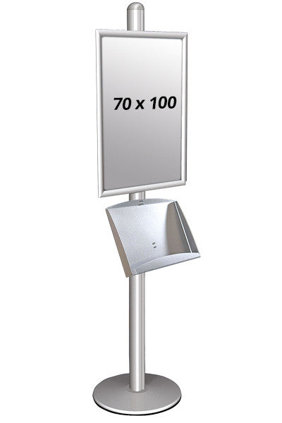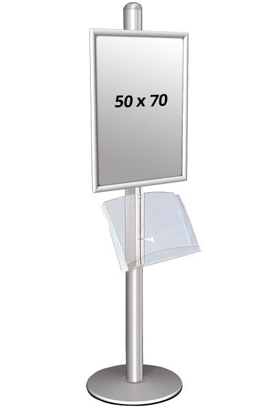 Unser eleganter und hochwertiger Info-Ständer 1, bestehend aus einem eloxierten Aluminiumständer, 2 x A4 Prospekthalter und einem Klapprahmen für Plakate bietet Ihnen die Möglichkeit Ihre Informationen und Botschaften außergewöhnlich in Szene zu setzen. Sie haben die Möglichkeit das Format Ihres Klapprahmens auszuwählen, sowie ob Sie Acryl oder Alu-Ablagen für Ihre Prospekte oder Kataloge wollen.