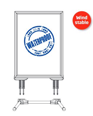 Der Kundenstopper ist in der Praxis einfach zu montieren und steht dank der galvanisierten und pulverlackierten Beine auch bei sehr starkem Wind stabil. Das schwarze Gummi schützt zusätzlich vor dem Eindringen von Wasser. Die Federn sind ebenfalls rostgeschützt, um eine lange Lebensdauer zu gewährleisten.