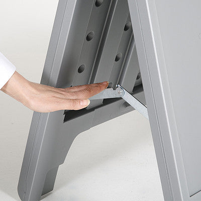 Das Anbringen und Austauschen von Aufklebern ist unkompliziert und geht relativ schnell. Rückstände von Aufklebern gibt es auf Grund des Materials nicht. Sehr komfortabel ist der Griff und das geringe Gewicht von 5,6kg, so lässt sich der Aufsteller problemlos zusammenklappen und an einer anderen Stelle platzieren.