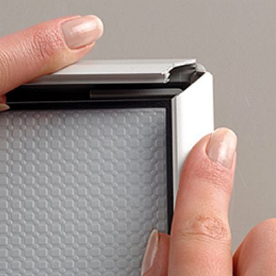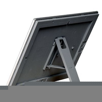 Das Austauschen von Fotos erfolgt blitzschnell. Klappen Sie dazu alle vier Seiten auf und entfernen Sie die Frontscheibe, setzen Ihr Poster ein und klappen Sie die Seiten wieder zu. Die Frontscheibe hat eine entspiegelnde Funktion. Somit sind Ihre Fotos auch bei Sonneneinstrahlung immer erkennbar. Die Rückplatte ist aus grauem Polystyrol und die Ecken auf Gehrung. Der Klapprahmen lässt sich dank seiner Stütze vertikal als auch horizontal aufstellen.