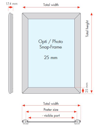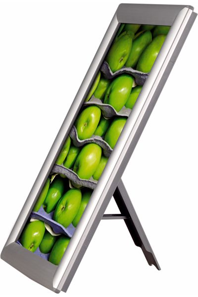 Dieser Posterrahmen mit einem Profil von 25mm eignet sich perfekt als edles Dekorationselement für Ihr Werbeplakat. Der Praktische Rahmen mit Klappmechanik ist vielseitig einsetzbar und ein muss für Hotels, Unternehmen, Agenturen oder andere Geschäfte und kann vertikal oder horizontal auf Tischen, Theken oder Rezeptionen aufgestellt werden.