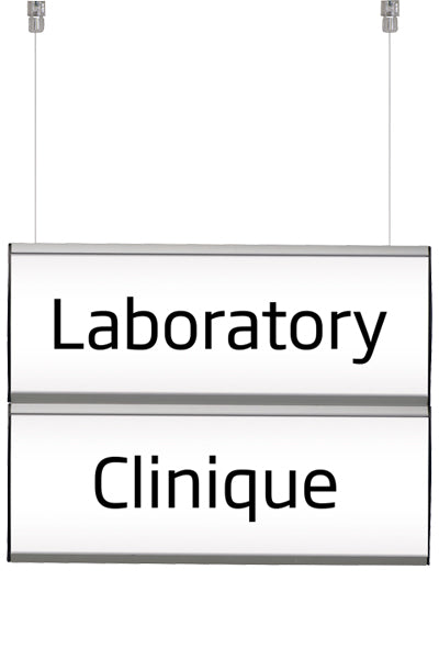 Die hängenden Hinweisschilder sind eine innovative und effektive Lösung für die Informationsvermittlung in verschiedenen Umgebungen. Sie bieten eine ausgezeichnete Möglichkeit, Wegweiser und wichtige Informationen klar und sichtbar zu präsentieren. Mit ihrem eloxierten Aluminiumrahmen und den schwarzen Kunststoff-Endkappen verbinden sie Langlebigkeit und Stil und passen sich dabei mühelos an unterschiedliche Raumgestaltungen an. Dank der APET-Frontplatte gestaltet sich das Wechseln von Informationen schnell und einfach. Sie ermöglicht eine unkomplizierte Anpassung an veränderte Anforderungen sowie die Aktualisierung von Botschaften. Die hängenden Hinweisschilder sind somit eine flexible Lösung für unterschiedliche Informationsbedürfnisse.