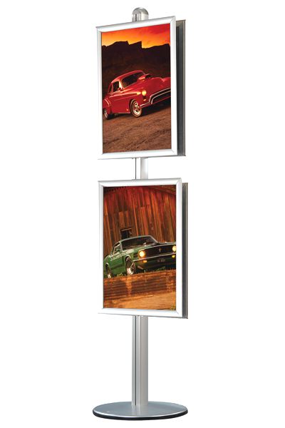 Unser eleganter und hochwertiger Info-Ständer 12, bestehend aus einem eloxierten Aluminiumständer und 4 Posterrahmen in der Farbe Silber (Profile 25mm), bietet die Möglichkeit Ihre Informationen und Botschaften außergewöhnlich zu präsentieren. Sie haben die Möglichkeit das Format Ihres Klapprahmens auszuwählen. Sie erhalten einen sehr hochwertigen und robusten Info-Ständer, der beliebig mit Prospektregalen, Rundregalen oder Logoplatte erweiterbar und aufrüstbar ist.