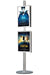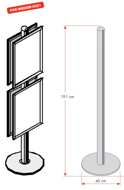 Ein Info-Ständer kann in einem Unternehmen vielseitig eingesetzt werden. Dieser Info-Ständer eignet sich besonders gut, um Besucher auf besondere Informationen oder Hinweise aufmerksam zu machen, oder lenken Sie die Aufmerksamkeit Ihrer Kunden auf bestimmte Produkte. Bereits von weitem ist der Info-Ständer mit 1,91m Höhe nicht zu übersehen und kann als wichtiges Hinweisschild für Besucher und Kunden nützlich sein. Z.B. in einer Behörde, Körperschaft, Bankfiliale, Flughafen, Bahnhof, Agentur oder Einkaufspassage. Aber auch für Ihren Showroom, Ihre Produktpräsentation oder Ihren Messestand ist unser Info-Ständer ein Blickfang.