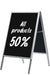 Der A-Board Kundenstopper ist der perfekte Begleiter für den Indoor-Bereich, kann aber auch bei passenden Wetterbedingungen im Outdoor Bereich verwendet werden. Der Kundenstopper verfügt über eine schwarze Schreiboberfläche, die mit passenden Markern beschriftet werden kann. Die qualitativ hochwertige 27 mm Alurahmenkonstruktion und die stabilen 15 x 30 mm viereckigen Alu-Füße gewährleisten eine hohe Produktqualität und Stabilität. Der Kundenstopper ist mit einer Größe von 600 x 800mm groß genug, um auffällige Botschaften und Angebote zu präsentieren.