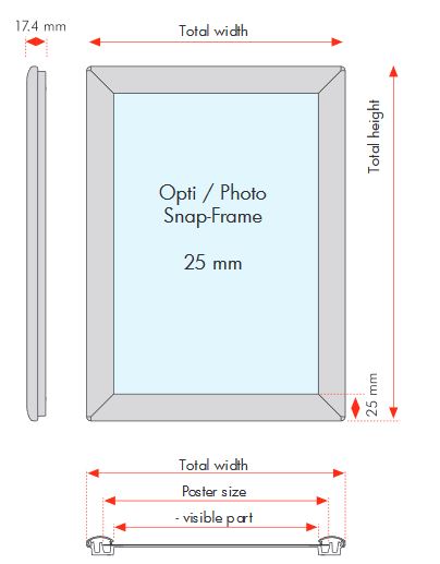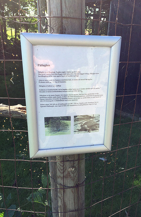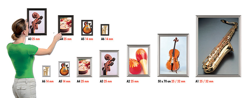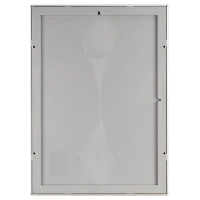 Top Profil in eloxiertem Aluminium mit Ecken auf Gehrung. Graue Rückplatte in Polystyrol. Entspiegelte APET Frontplatte. Für vertikal oder horizontal. Mehr dazu im technischen Datenblatt.