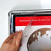 Das Austauschen von Postern erfolgt blitzschnell. Klappen Sie dazu alle Vier Rahmen aus und entfernen Sie die Frontscheibe. Die Frontscheibe hat eine entspiegelnde Funktion. Somit sind Ihre Plakate auch bei Sonneneinstrahlung immer erkennbar.