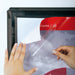 Dieser Alu Klapprahmen ist sehr leicht an der Wand anzubringen. Die Schrauben werden durch den Rahmen verdeckt und sind nicht mehr sichtbar. Nachdem der Rahmen an der Wand angebracht ist, klappen Sie ganz einfach den Rahmen auf allen 4 Seiten auf, setzen Ihr Poster ein und decken es mit der APET Frontscheibe ab. Danach klappen sie einfach die Rahmen wieder zu. Sehr einfacher und schneller Austausch von Plakaten und Postern.