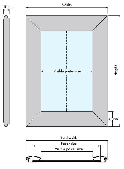 Dieser Posterrahmen in Sondergrößen gefertigt, eignet sich perfekt als edles Werbeplakat oder Dekorationselement. Der praktische Rahmen ist beliebt in Hotels, Bürogebäuden, Museen, Kreuzfahrtschiffe, Behörden oder Ämter. Ideal für Fluchtpläne, Notfallpläne, Werbe-Plakate, Bilder, oder andere Botschaften.