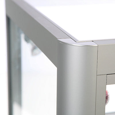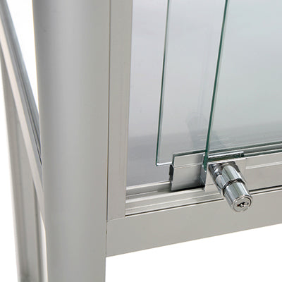 Diese Show-Vitrine in Silber ist ein unverzichtbares Möbelstück für jede Geschäfts- oder Ausstellungsumgebung. Ausgestattet mit Aluminiumprofilen und gehärtetem Glas, bietet sie dabei eine perfekte Kombination aus Robustheit und Eleganz. Der Einsatz von 4 LED-Spots an den Seiten gewährleistet eine exzellente Beleuchtung Ihrer Produkte, wodurch ihre Attraktivität bei potenziellen Kunden erhöht wird.