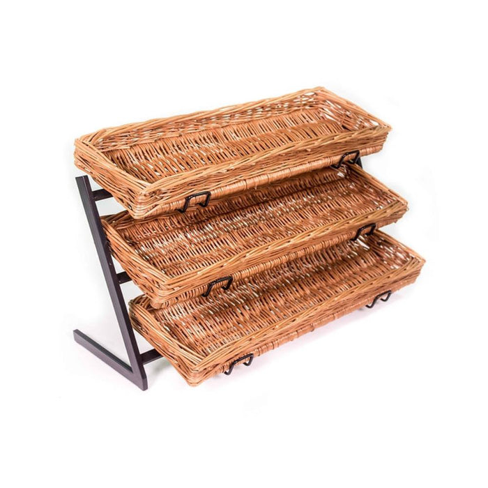 Ein Verkaufsständer muss neben der visuellen Attraktivität ebenso funktional und zuverlässig sein, denn nur so können Sie ihn leicht handhaben. Das robuste Gestell des vorliegenden Verkaufsständers mit 3 Körben besteht aus Metall. Die leichte Neigung der eingesetzten Körbe bieten eine gute Übersicht über Ihr Angebot- Durch die Halterungen können die Körbe nicht nach vorne rutschen und bieten Stabilität für die 3 mitgelieferte Körbe. Diese können attraktiv mit unterschiedlicher Ware bestückt werden – von Lebensmitteln bis zu kleinen Mitnahmeartikeln.