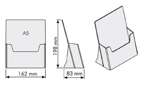 Dieser Tisch-Prospekthalter aus spritzgegossenem Polystyrol ist die ideale Lösung für eine übersichtliche und ansprechende Präsentation von Prospekten, Flyern oder Broschüren. Dank seiner klaren Transparenz wirkt er modern, robust und fügt sich in jede Umgebung ein – ob Büro, Rezeption, Messe oder Wartezimmer.
