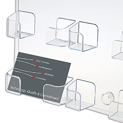 Dieser praktische Visitenkartenhalter ist eine ästhetisch ansprechende Lösung, um Visitenkarten ordentlich und zugänglich vor Ort zu präsentieren. Dieses hochwertige Produkt, gefertigt aus elegantem Acryl, verfügt in der Praxis über sechs Fächer mit einer Tiefe von jeweils 2,5 cm, die optimalen Platz für Ihre Visitenkarten bieten. Die Breite von 21,5 cm und Höhe von 24,8 cm sorgen dafür, dass der Halter sowohl platzsparend als auch effizient ist.