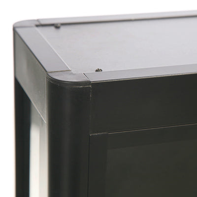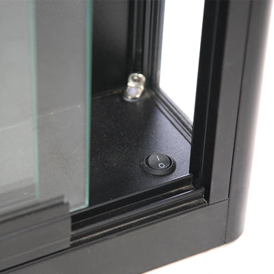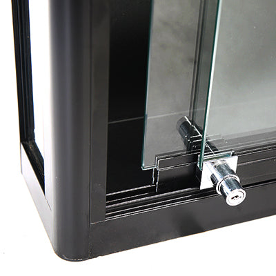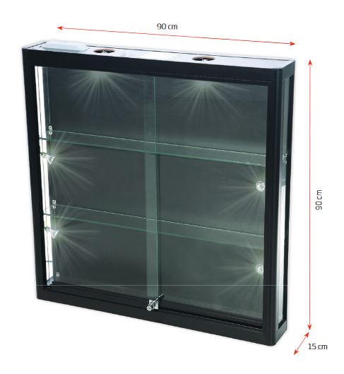 Die Wand-Vitrine in klassischem Schwarz vereint Funktionalität und Ästhetik. Ihre eleganten Aluminiumprofile und das gehärtete Glas lassen sie zum stilvollen Blickfang in jeder Umgebung werden. Mit ihren zwei stabilen Glasablagen von 7 mm Dicke bietet die Wand-Vitrine dabei reichlich Platz für eine ansprechende Präsentation Ihrer Produkte und Exponate. So hebt sie jedes Ausstellungsstück auf einzigartige Weise hervor und ermöglicht es, Ihre Artikel effektiv in Szene zu setzen.