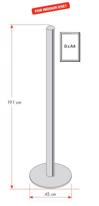 Ein Werbeständer kann in einem Unternehmen vielseitig eingesetzt werden. Die 8 doppelseitigen DIN A4 Slide-In Rahmen bieten ausreichend Platz um Ihre Produkte effektiv zu bewerben und Ihre Marke wird dem Kunden interessant und auffällig präsentiert. Die praktischen Slide-In Rahmen ermöglichen das Einsetzen von Postern oder Plakaten mit dem Sie Ihre Botschaft verstärken können. Der Austausch von Werbebotschaften ist unkompliziert und einfach. Der breite Standfuß sorgt zudem für einen stabilen Stand. Stellen Sie den Ständer an einem besonderen Ort auf, damit er Ihren Kunden beim Betreten des Raumes direkt in das Auge fällt. Der Einsatz von Lichteffekten kann dabei helfen.