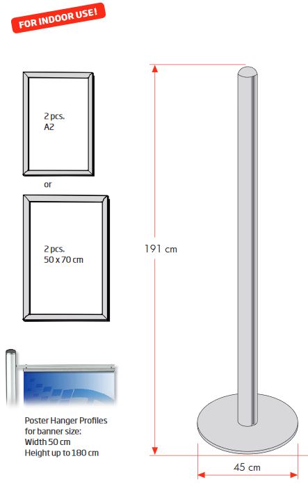 Ein Werbeständer kann in einem Unternehmen vielseitig eingesetzt werden. Die 2 x DIN A2 Slide-In Rahmen bieten ausreichend Platz um Ihre Produkte effektiv zu bewerben und Ihre Marke wird dem Kunden interessant und auffällig präsentiert. Die praktischen Slide-In Rahmen ermöglichen das Einsetzen von Posten oder Plakaten mit dem Sie Ihre Botschaft verstärken können. Wählen Sie in der Artikelauswahl die Länge der Bannerschiene, die Sie wünschen. Wir bieten die Bannerschiene in den Längen 50cm und 70cm an . Der Austausch von Werbebotschaften ist unkompliziert und einfach. Der breite Standfuß sorgt zudem für einen stabilen Stand. Stellen Sie den Ständer an einem besonderen Ort auf, damit er Ihren Kunden beim Betreten des Raumes direkt in das Auge fällt. Der Einsatz von Lichteffekten kann dabei helfen.
