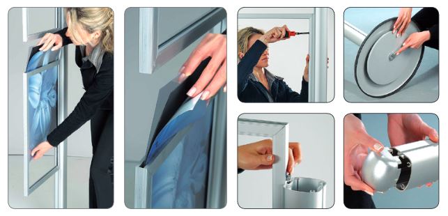 Ein Werbeständer kann in einem Unternehmen vielseitig eingesetzt werden. Die Rundregale haben eine Traglast von 1 Kg und können beispielsweise Damenschuhe, Herrenschuhe, Schmuck, Figuren, Handtaschen, Bücher, Textilien und vieles mehr, effektiv bewerben und die Ware wird dem Kunden interessanter und auffälliger präsentiert. Die zwei praktischen DIN A2 Slide-In Rahmen machen den Austausch von Werbebotschaften unkompliziert und einfach. Der breite Standfuß sorgt zudem für einen stabilen Stand. Stellen Sie den Ständer an einem besonderen Ort auf, damit er Ihren Kunden beim Betreten des Raumes direkt in das Auge fällt. Der Einsatz von Lichteffekten kann dabei helfen.